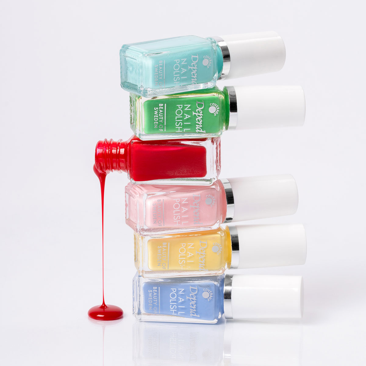 Depend Minilack har en perfekt storlek på 5 ml och är lätt att applicera med den specialdesignade penseln som är platt och klippt med rundad kant och därmed extra följsam. Flaskan är försedd med symboler som visar lackets täckningsgrad; täckande, halvtäckande eller transparent. Kollektionerna uppdateras regelbundet med säsongens trendigaste färger. En riktig klassiker; liten, trendig och så prisvärd att du kan hänge dig med ett för varje outfit i garderoben.
