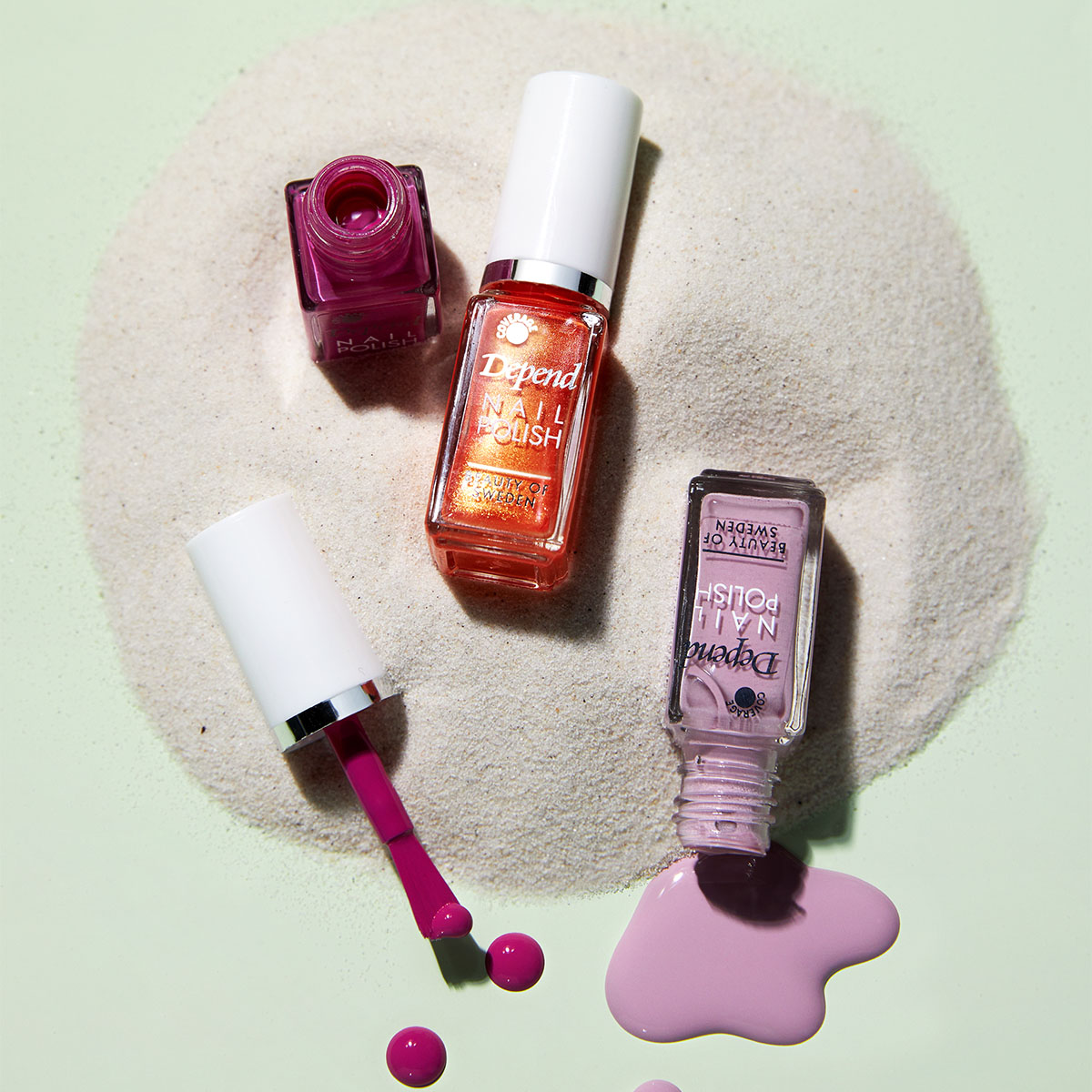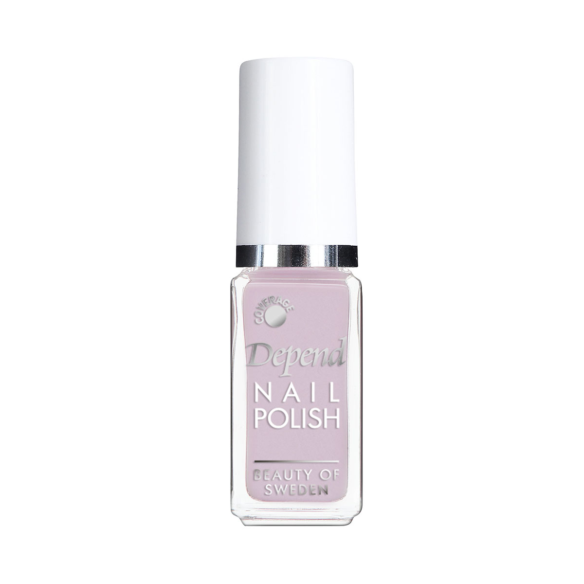 Depend Minilack har en perfekt storlek på 5 ml och är lätt att applicera med den specialdesignade penseln som är platt och klippt med rundad kant och därmed extra följsam. Flaskan är försedd med symboler som visar lackets täckningsgrad; täckande, halvtäckande eller transparent. Kollektionerna uppdateras regelbundet med säsongens trendigaste färger. En riktig klassiker; liten, trendig och så prisvärd att du kan hänge dig med ett för varje outfit i garderoben.