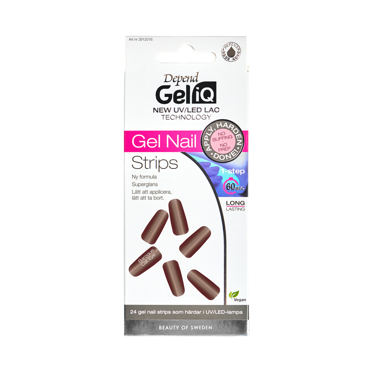 Gelnaglar i bara ett steg som ger både superglans och salongsfinish. Med vår 1-stepteknik gör du snabbt och enkelt en hållbar och perfekt manikyr på hemmaplan. Stripsen är tillverkade av högkvalitativ long-lasting gel. Enkla att applicera, enkla att ta bort! Härdar i UV/LED-lampan på 60 sekunder.