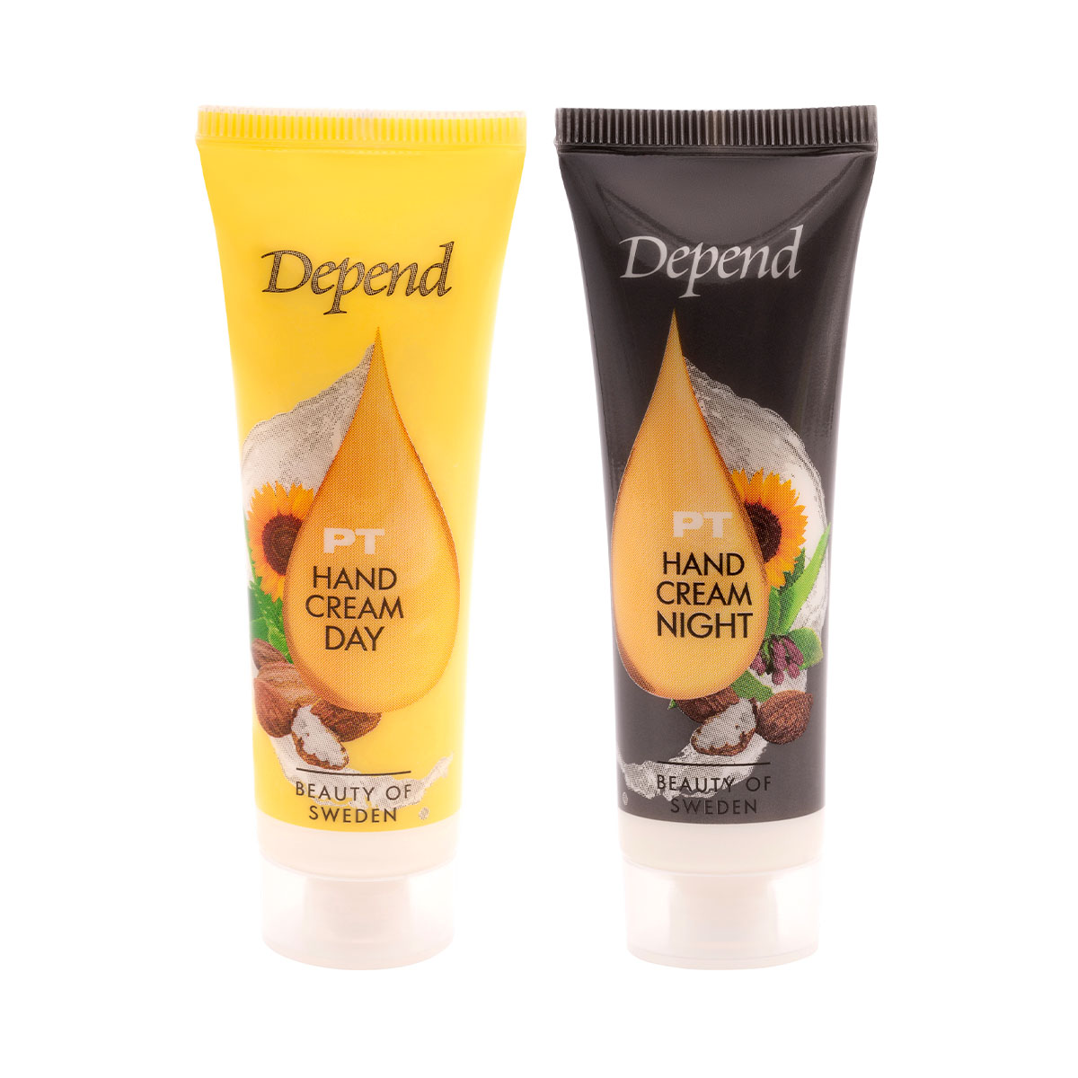 Torra, spruckna händer? Mjukgör och återfukta med specialcreme för både dag och natt. En praktisk reseprodukt som tar liten plats, både i necessären och i handväskan. Mjukgörande och återfuktande handcreme för både dag och natt i praktisk reseformat. Daghandcremen absorberas snabbt av huden och ger mjuka, silkeslena och väldoftande händer. Berikad med Aloe Vera, E-vitamin, solrosolja, sheabutter och kakaosmör. Natthandcremen är rik, fyllig och ger intensivvård under din skönhetssömn. Berikad med Aloe Vera, Allantoin, E-vitamin, sheabutter och solrosolja som vårdar, skyddar och återfuktar dina händer. 30 ml.