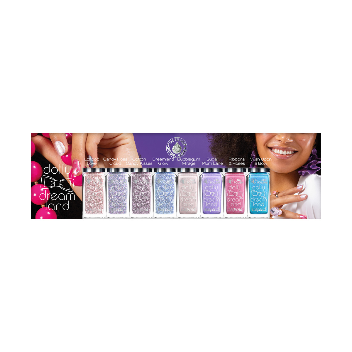 Depend Minilack har en perfekt storlek på 5 ml och är lätt att applicera med den specialdesignade penseln som är platt och klippt med rundad kant och därmed extra följsam. Flaskan är försedd med symboler som visar lackets täckningsgrad; täckande, halvtäckande eller transparent. Kollektionerna uppdateras regelbundet med säsongens trendigaste färger. En riktig klassiker; liten, trendig och så prisvärd att du kan hänge dig med ett för varje outfit i garderoben.