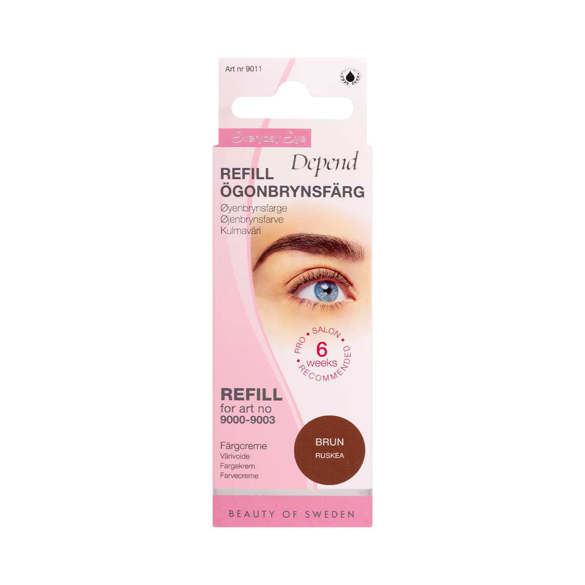 Har du använt Depend Everyday Eye Ögonbrynsfärg art nr 9000-9003 och har väteperoxid kvar men slut på färgcremen? Då är denna refillförpackning perfekt som innehåller färgcreme och applikatorborste. Ögonbrynsfärgen ger dig naturligt markerade och fylliga bryn på bara några minuter, en permanent färgning som håller i upp till 6 veckor. Finns i färgerna svart, brunsvart, mörkbrun och brun.