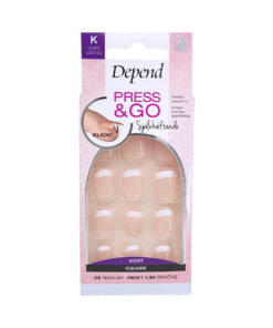 Självhäftande lösnaglar för en perfekt fransk manikyr på bara några minuter. Press & Go Flexi-Thin ger den ultimata passformen, är enkla att applicera och tas bort med bara varmt vatten utan att skada din naturliga nagel. Perfekt för dig som aldrig vågat prova lösnaglar eller där syftet bara är denna outfit för kvällen eller helgen. Är mycket lätta att ta bort med tvål och varmt vatten. Förpackningen innehåller 24 st naglar.
