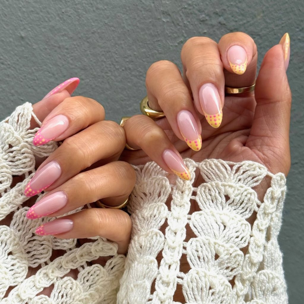 • Fransk manikyr med rosa twist Byt ut den klassiska vita tippen mot en rosa för en mjuk men modern look.